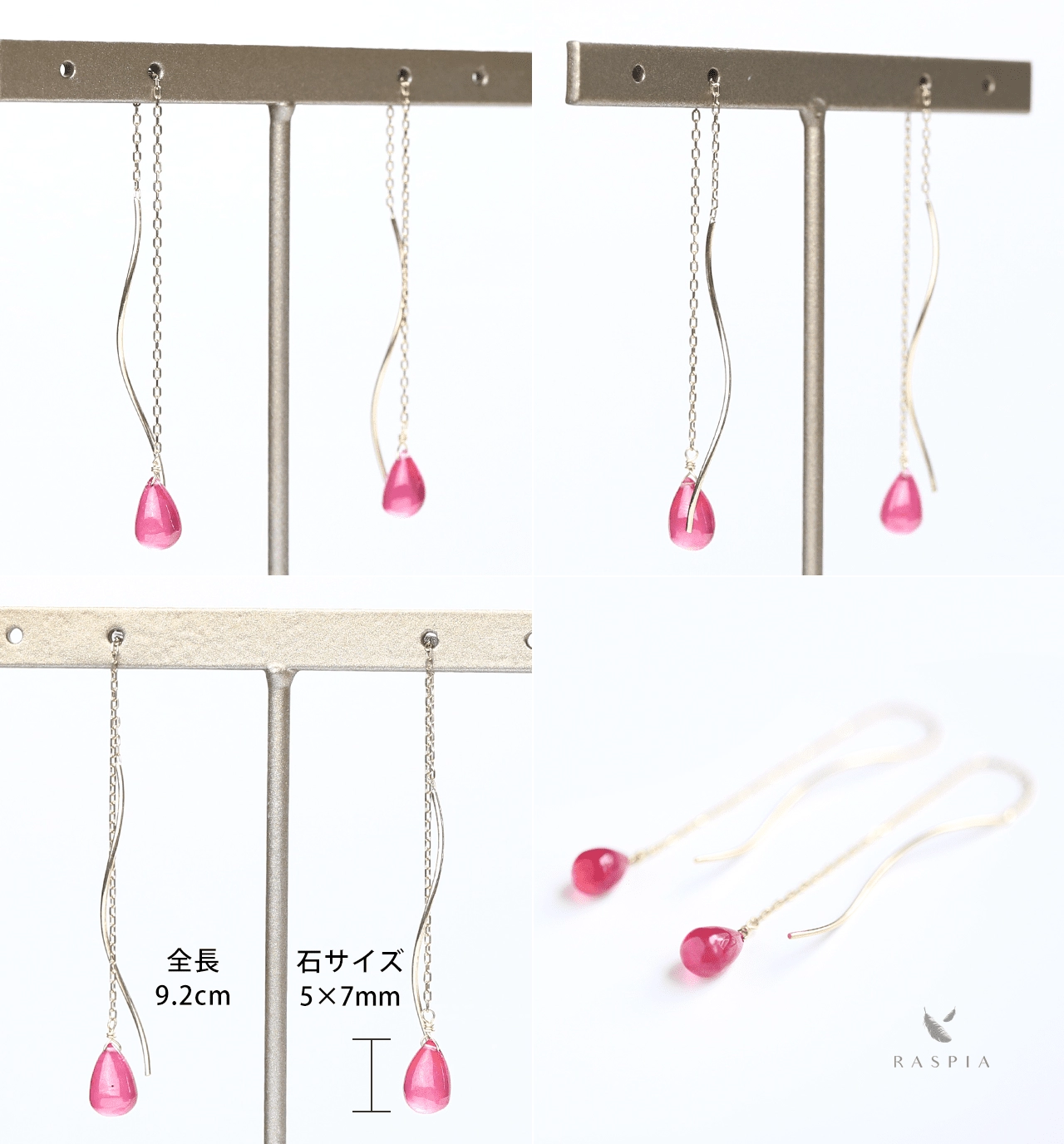 RASPIA(ラスピア)は、シンプルで大人可愛いデザインをイメージし、カラーストーン/天然石とK10(10金)/K18(18金)の本物のゴールド素材を使って手作りしています。