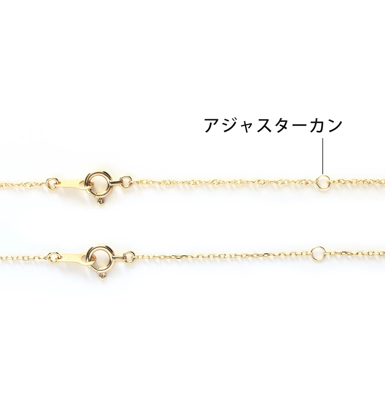 4面ダイヤカットのあずきチェーンを使用した、アジャスターカン付ネックレスです。