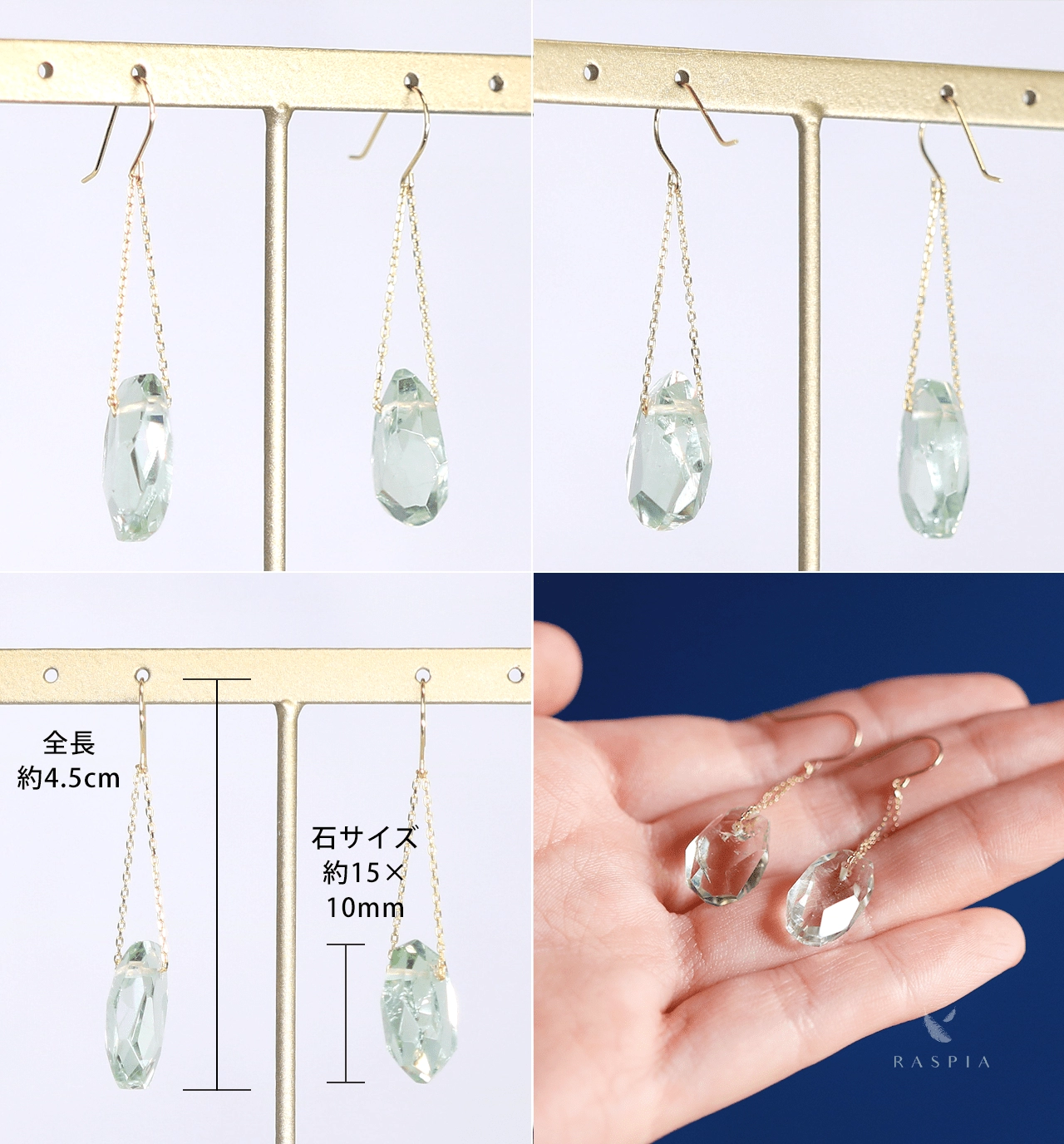| サイズ | 全長:約4.5cm グリーンアメジスト:約15mm×10mm フックの太さ:0.7mm | ||