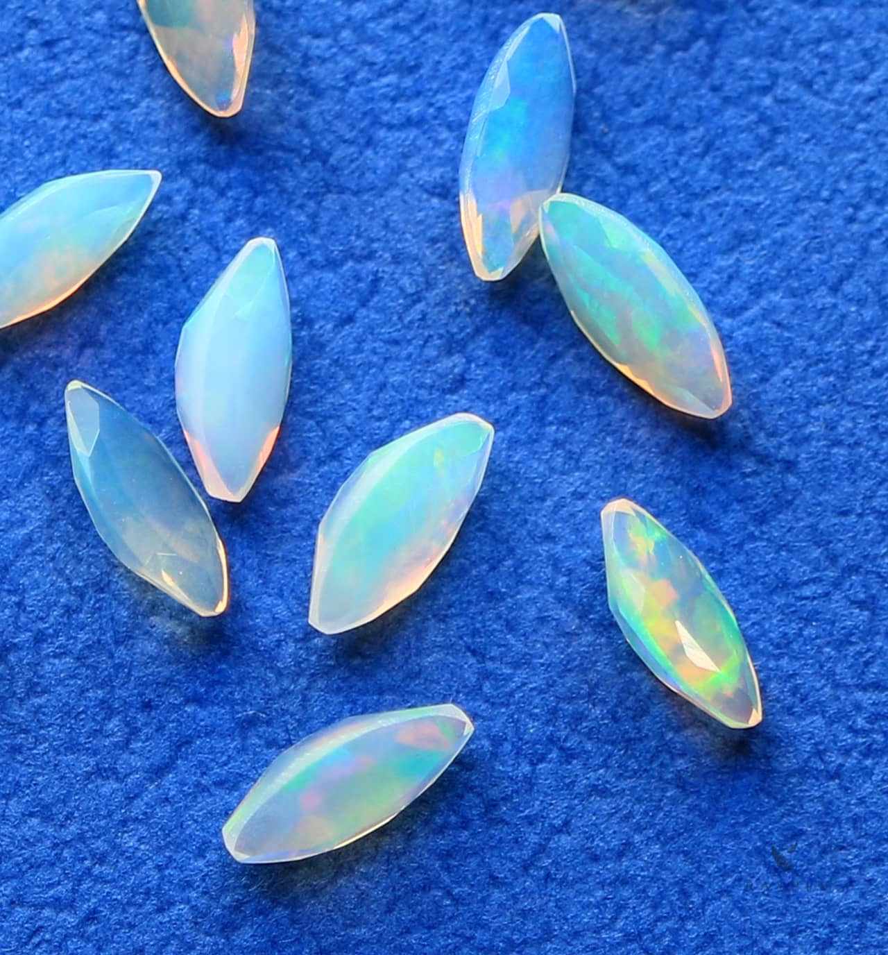 珍しいファセットがつけられたオパールは揺れるような遊色が楽しめるよう、カラー、カット・研磨の質、透明度など、美しいルースを1粒ずつ厳選して買付しております。